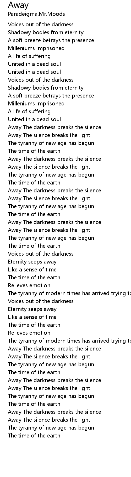 Away The darkness breaks the silence