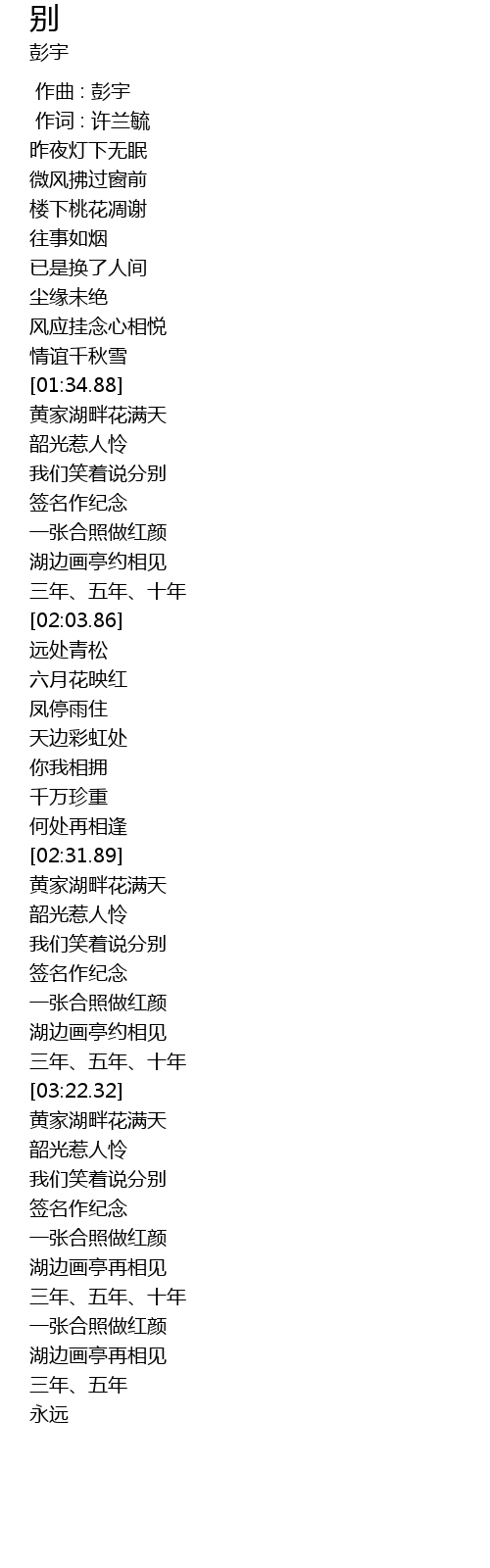 | [00:00.000] | zuo qu : peng yu |