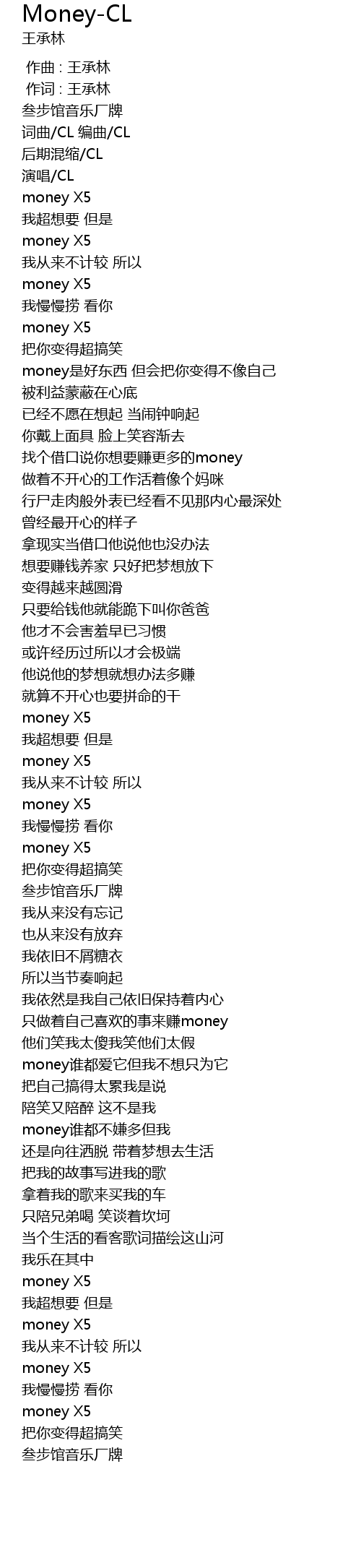 | [00:38.44] | zhǎo gè jiè kǒu shuō nǐ xiǎng yào zhuàn gèng duō de money |