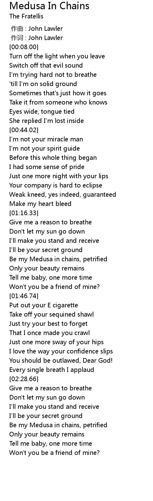 | [02:41.37] | Be my Medusa in chains, petrified |