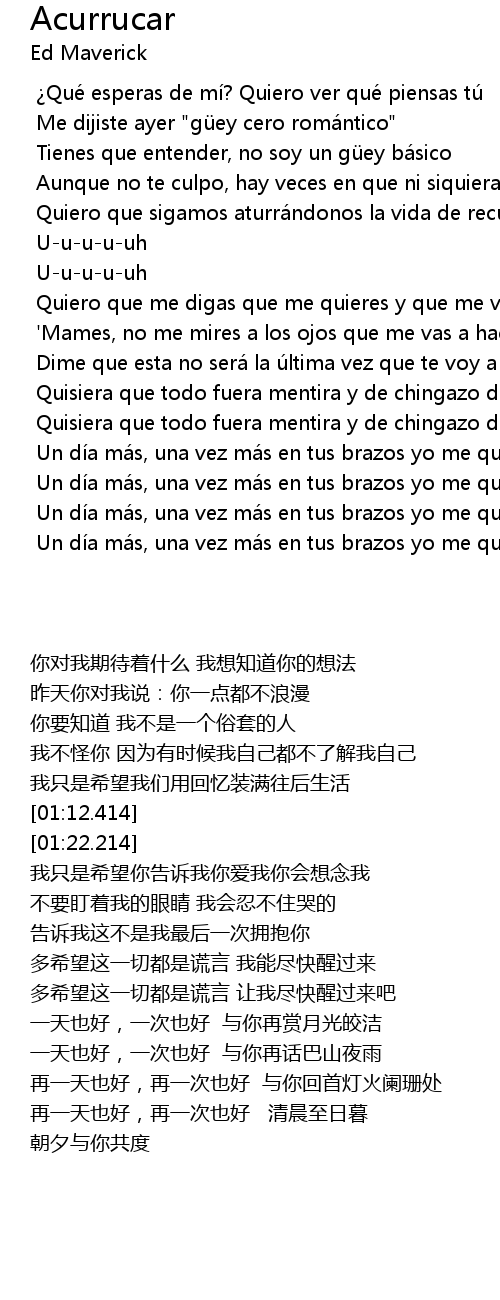 | [02:45.913] | Un día más, una vez más en tus brazos yo me quiero acurrucar |