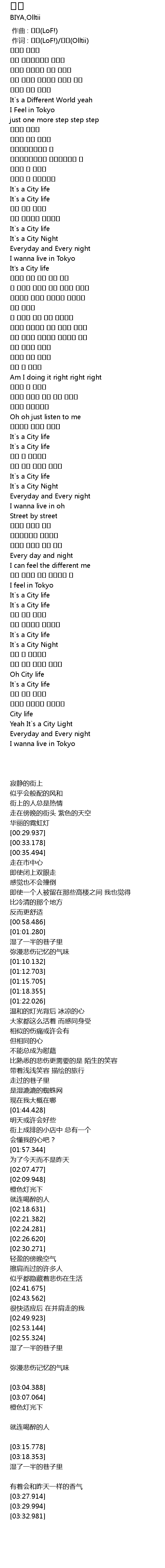 | [03:15.778] | Oh City life |