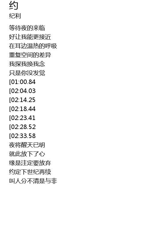 | [01:24.74][02:33.58][03:11.94] | 能再赴下世纪之约 |