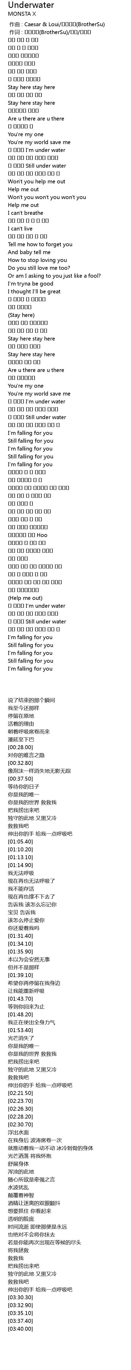 | [03:20.60] | 날 구해줘 Still under water |
