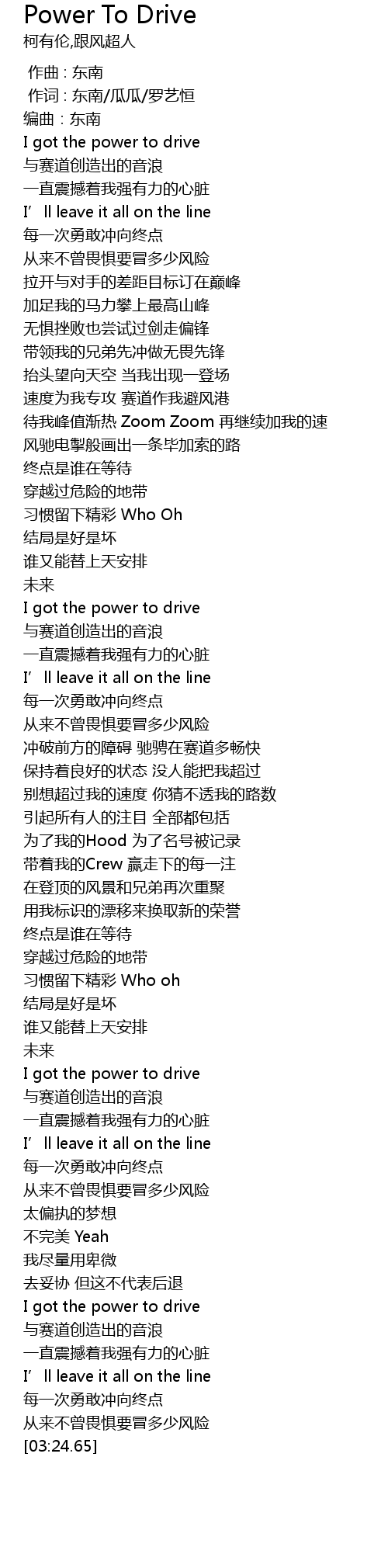 | [03:03.89] | I got the power to drive |