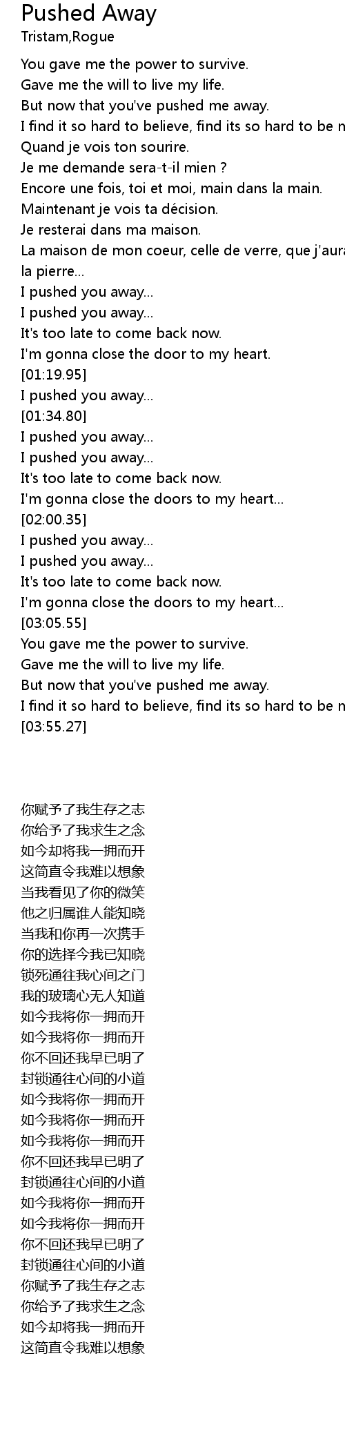 | [03:43.38] | But now that you' ve pushed me away. |