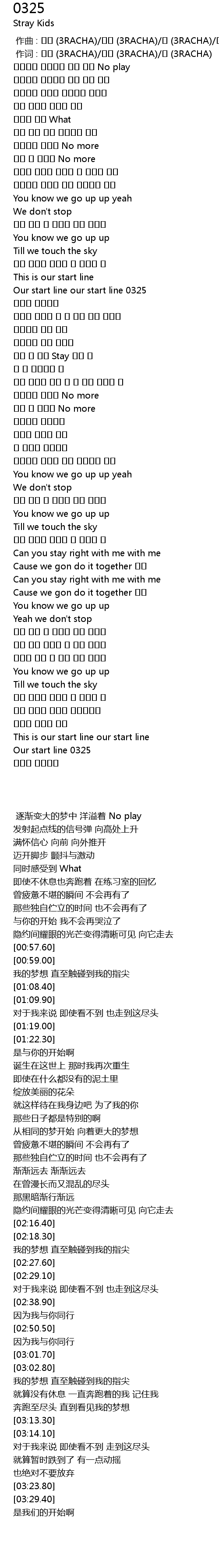 | [00:01.000] | 作词 : 방찬 (3RACHA)/창빈 (3RACHA)/한 (3RACHA) |