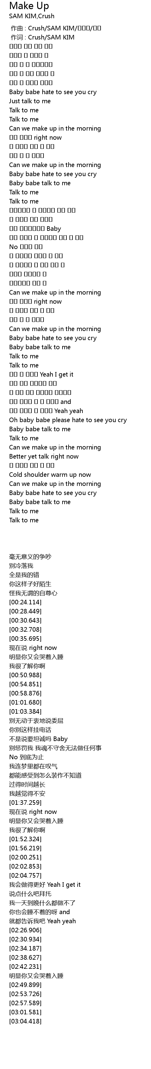 | [02:26.906] | Oh baby babe please hate to see you cry |