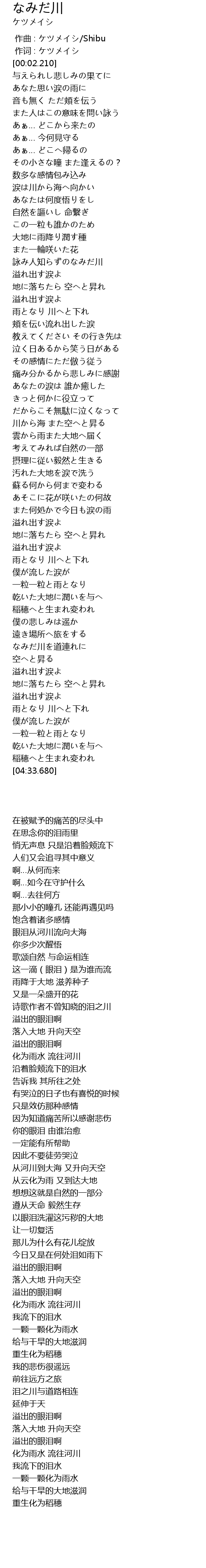 诗歌作者不曾知晓的泪之川 |