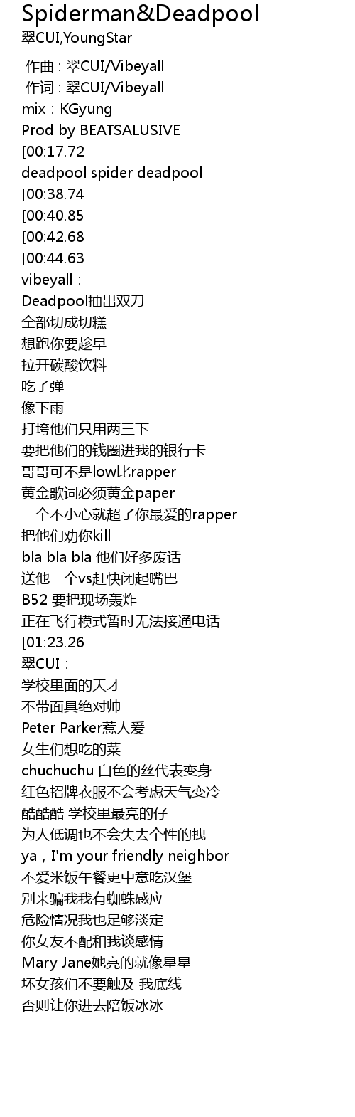 | [01:21.53][01:23.26] | spider deadpool spider deadpoo |