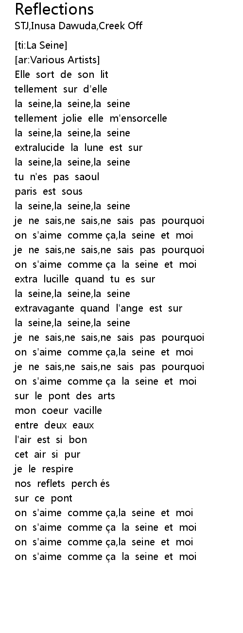 | [00:55.49] | on s'aime comme ça la seine et moi |