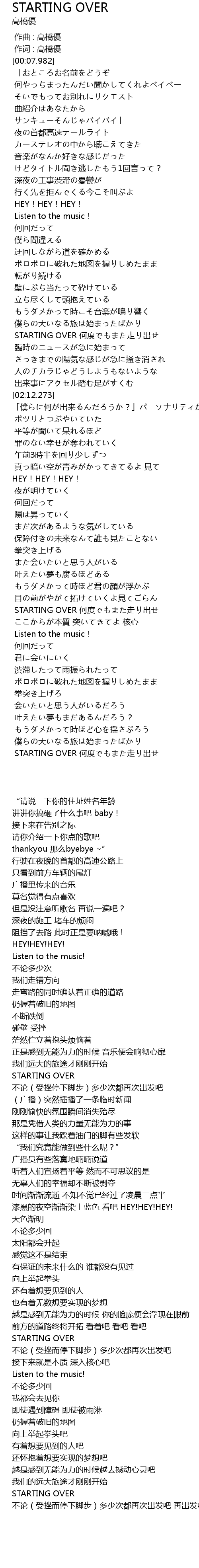 | [01:37.732] | STARTING OVER 何度でもまた走り出せ |