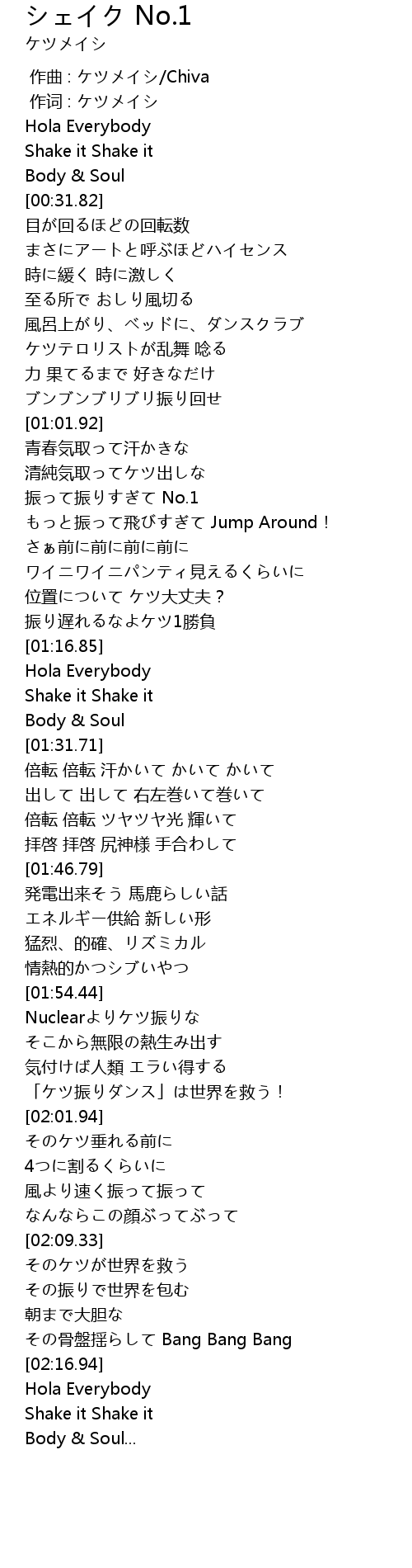 | [02:00.36] | 「ケツ振りダンス」は世界を救う! |