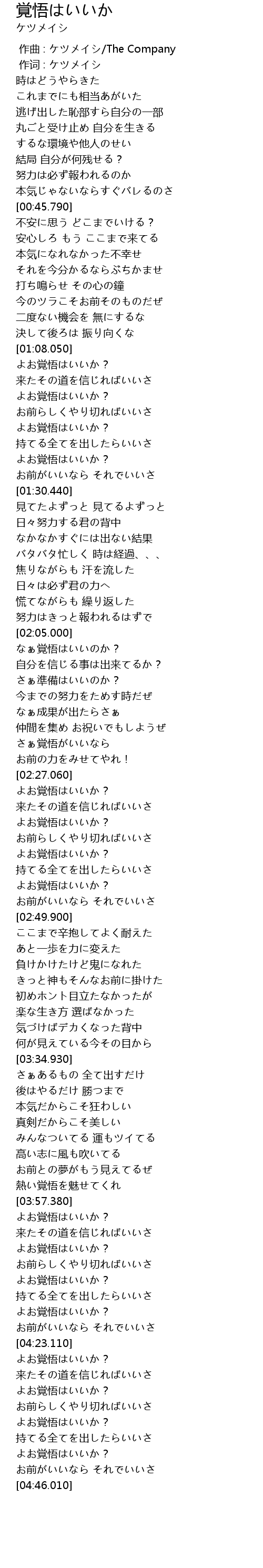 | [03:55.180] | 熱い覚悟を魅せてくれ |