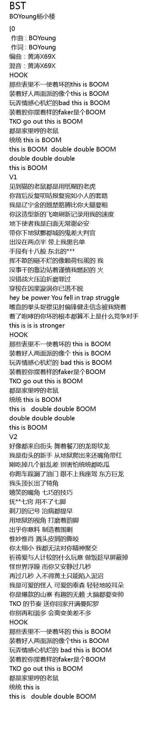 | [02:22.76] | 那些表里不一使着坏的 this is BOOM |