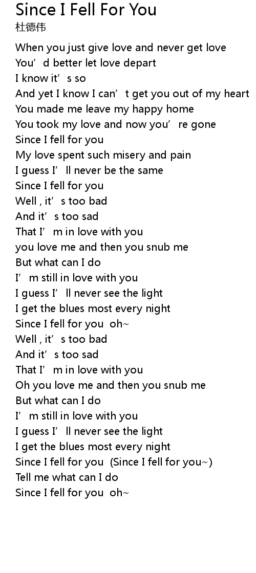 | [03:18.000] | Since I fell for you Since I fell for you |