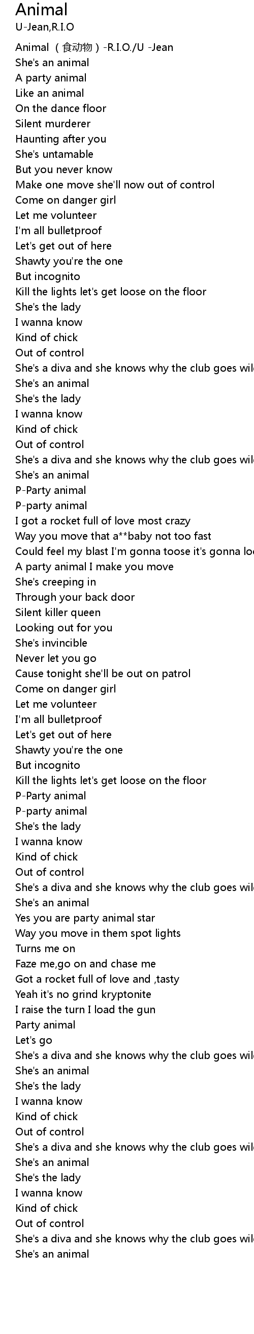 | [00:00.00] | Animal (食动物)-R.I.O./U -Jean |