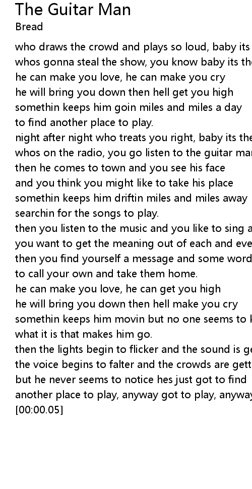 night after night who treats you right, baby its the guitar man |