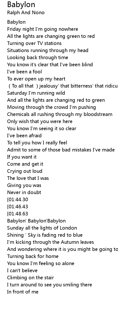 | [02:02.16] | Babylon' Babylon' Babylon |