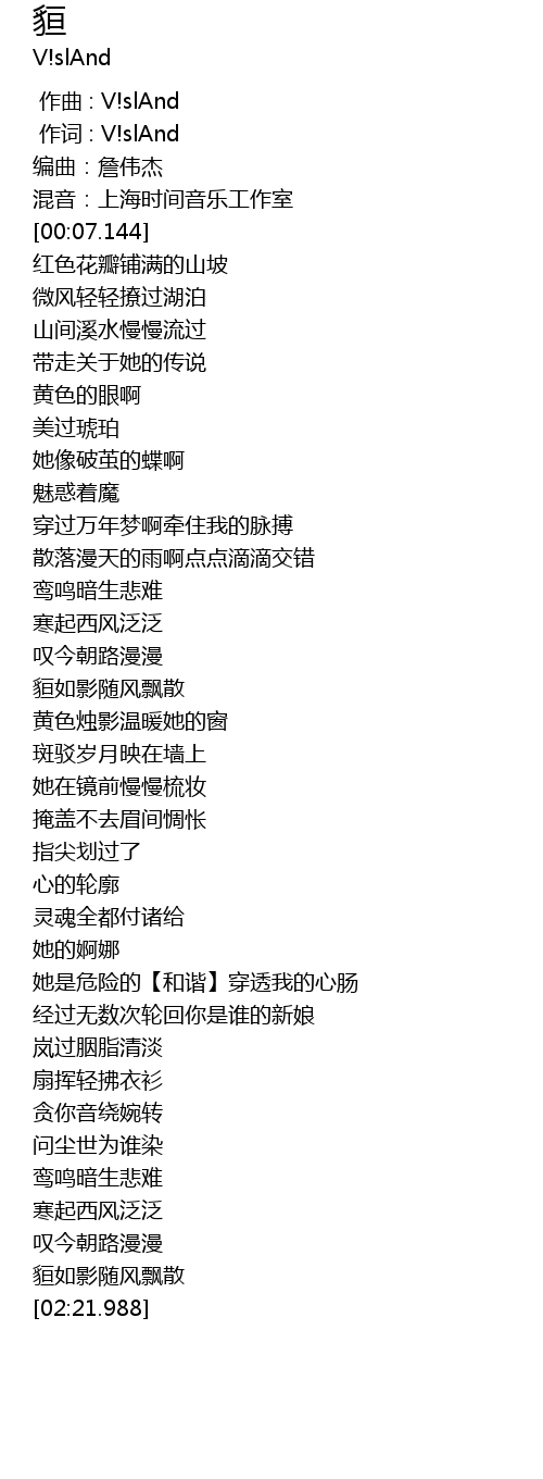 | [00:00.000] | zuò qǔ : V! slAnd |