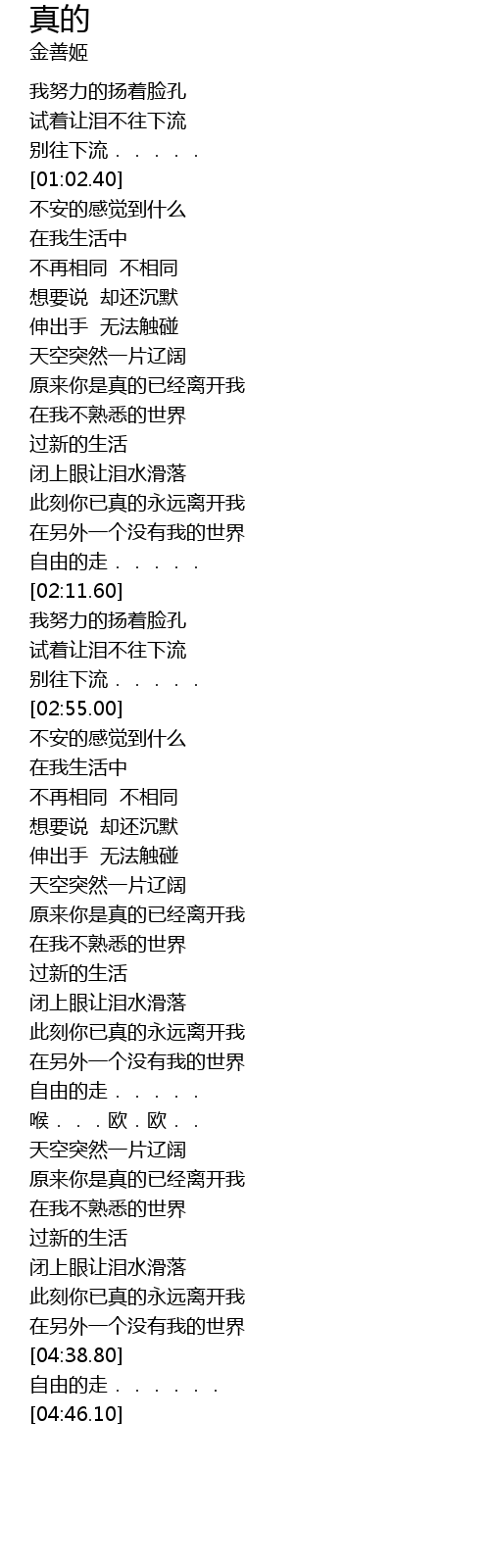 | [01:40.30] | yuán lái nǐ shì zhēn de yǐ jīng lí kāi wǒ |