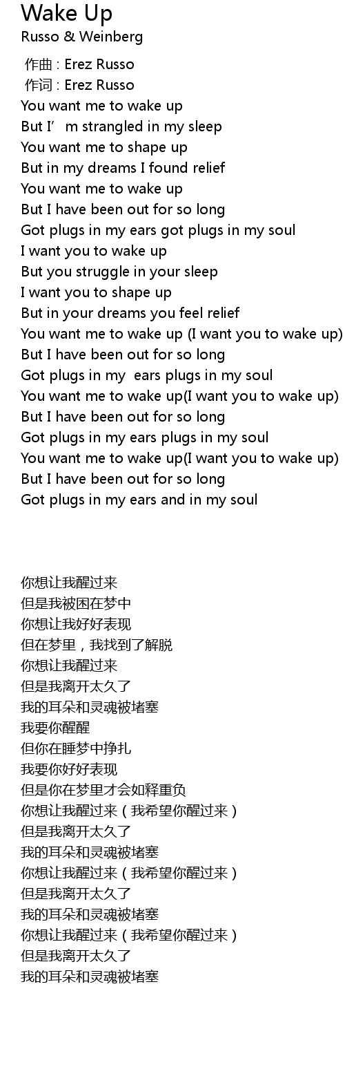 | [01:20.64] | You want me to wake up I want you to wake up |