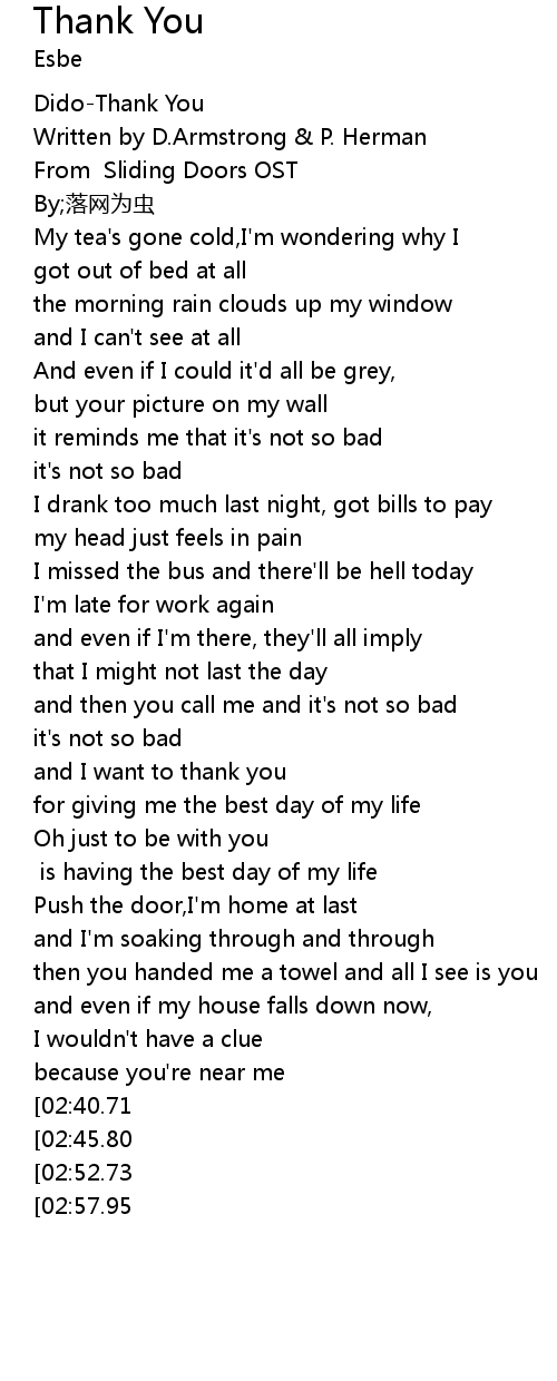 | [03:09.80][02:45.80] | for giving me the best day of my life |