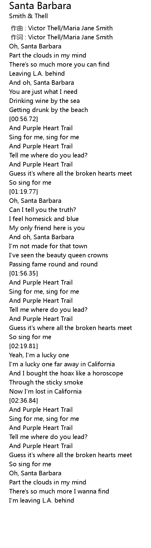 | [00:39.51] | And oh, Santa Barbara |