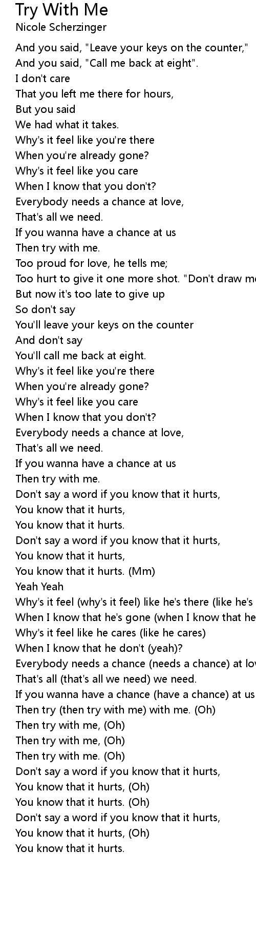 Too hurt to give it one more shot. "Don't draw me in," he warns me, |