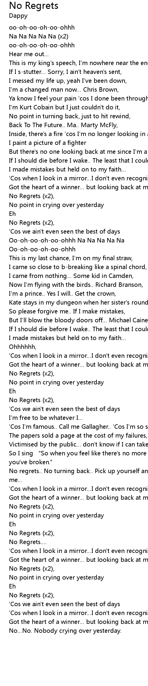 | No Regrets. | |