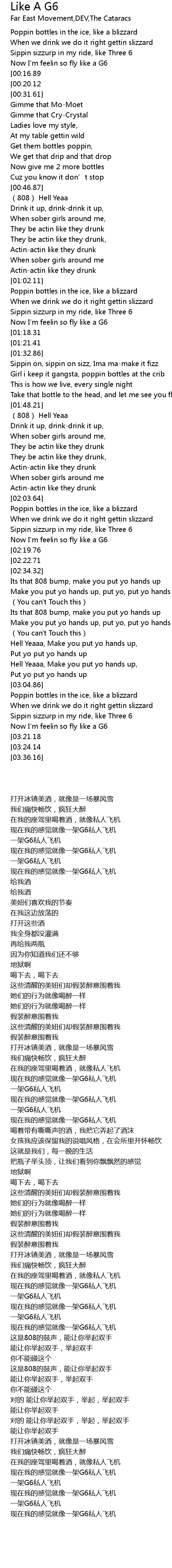 | [03:28.84][03:21.18] | Like a G6, Like a G6 |
