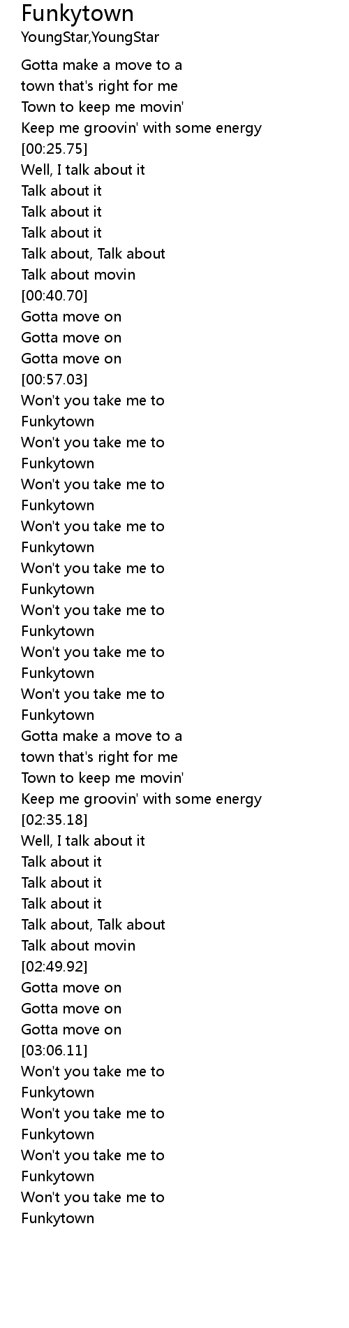 | [03:26.20] | Funkytown |