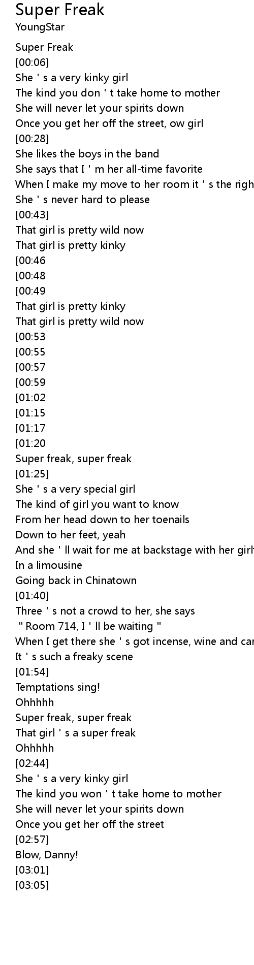 | [01:33] | And she ll wait for me at backstage with her girlfriends |
