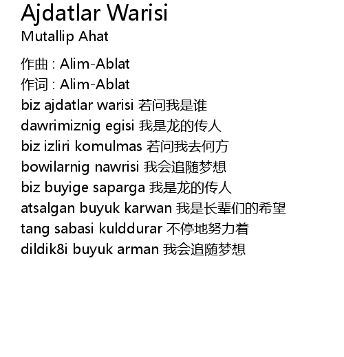 | 作词 : Alim-Ablat | |