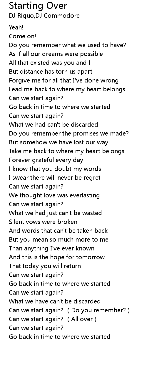 | [03:30.93] | Can we start again? (All over) |
