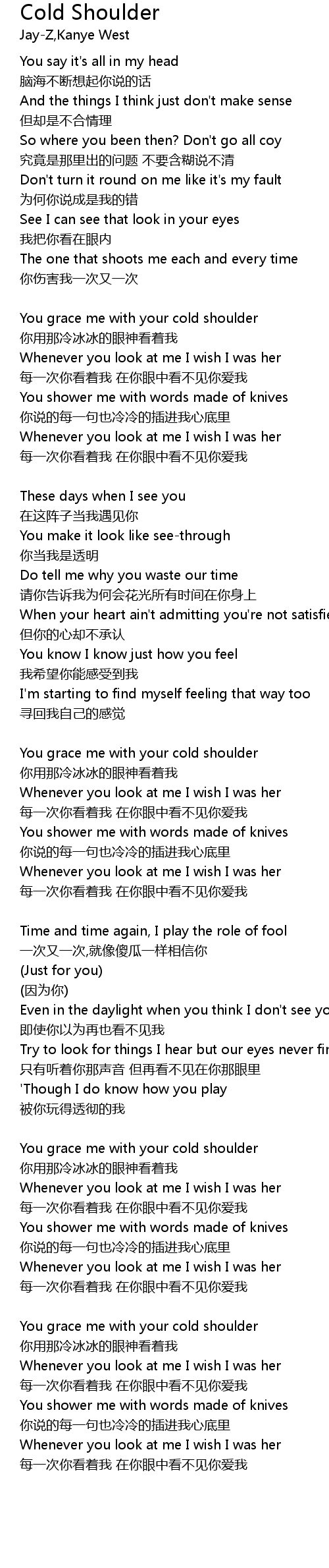 | 歌曲 | Cold Shoulder |