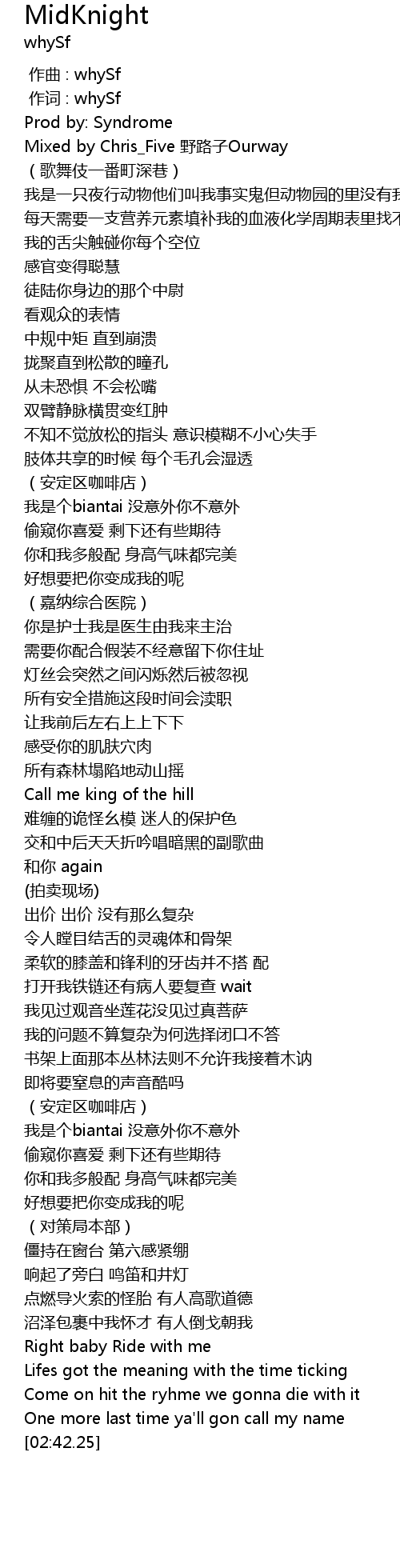 | [00:12.34] | Mixed by Chris_Five 野路子Ourway |