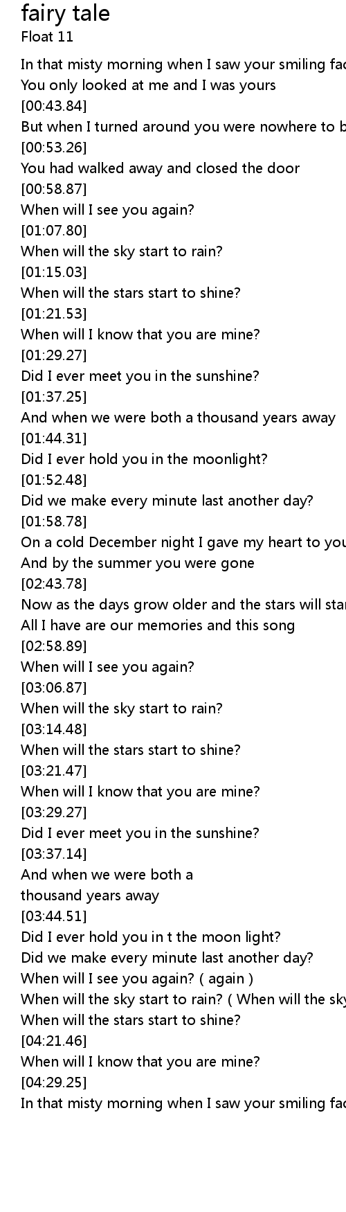 | [04:09.65] | When will the sky start to rain? When will the sky start to rain? |