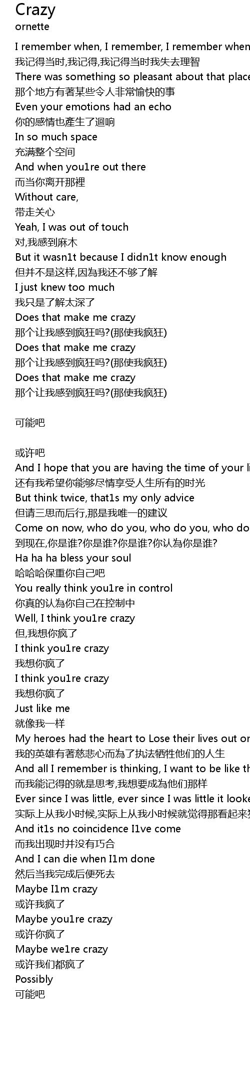 | 歌曲 | Crazy |