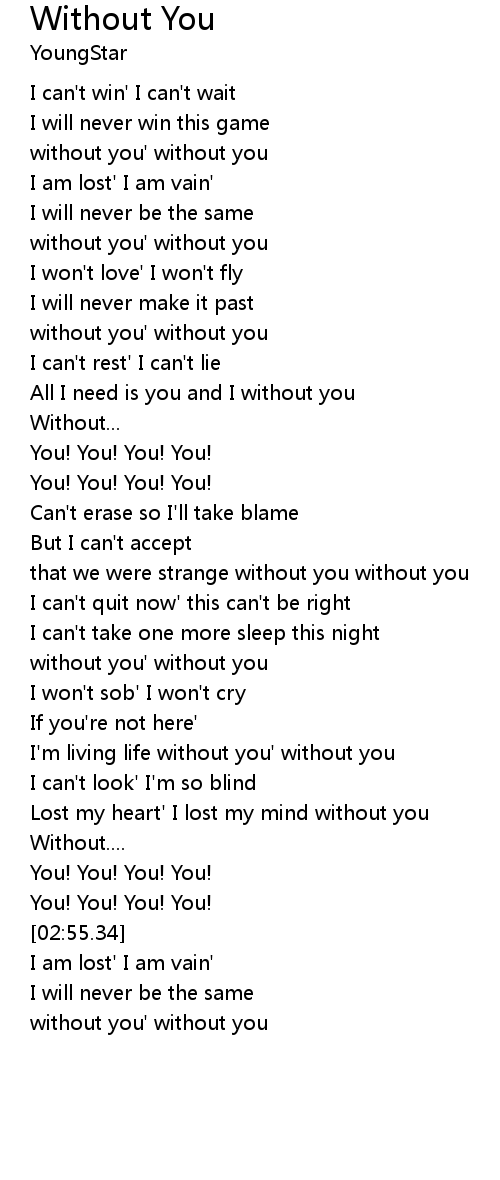 [02:04.02] without you' without you