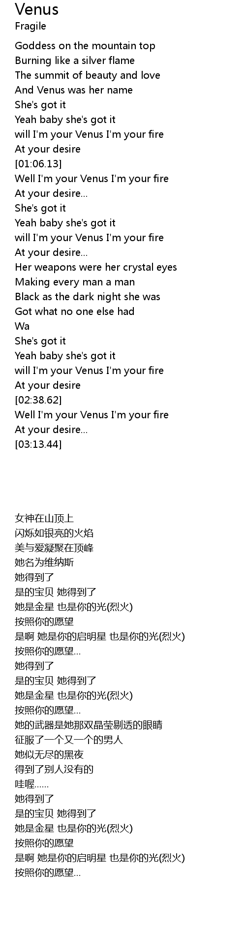 Well I'm your Venus I'm your fire |