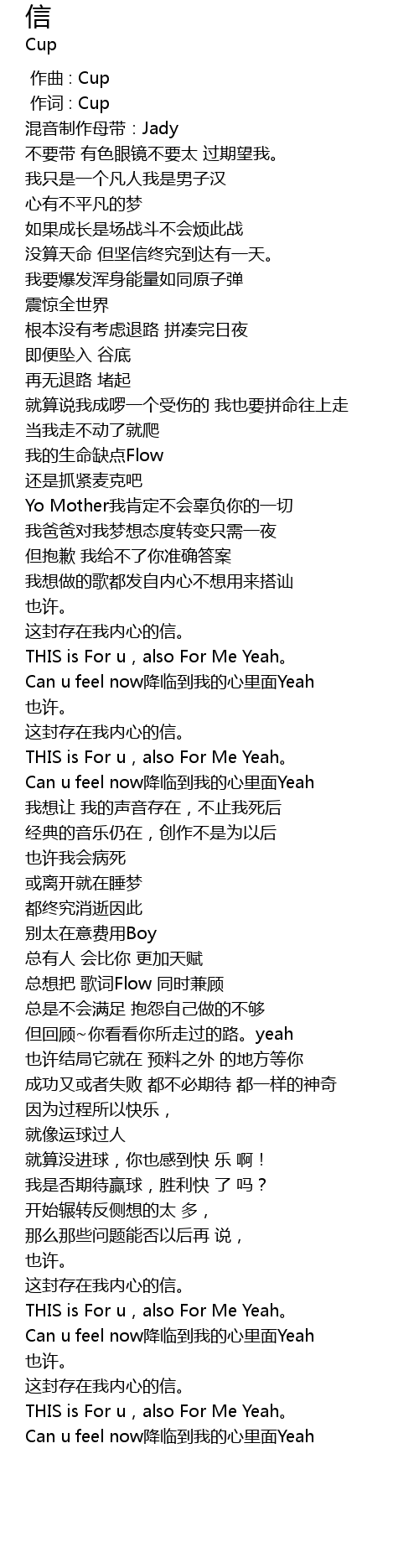| [00:00.000] | zuo qu : Cup |