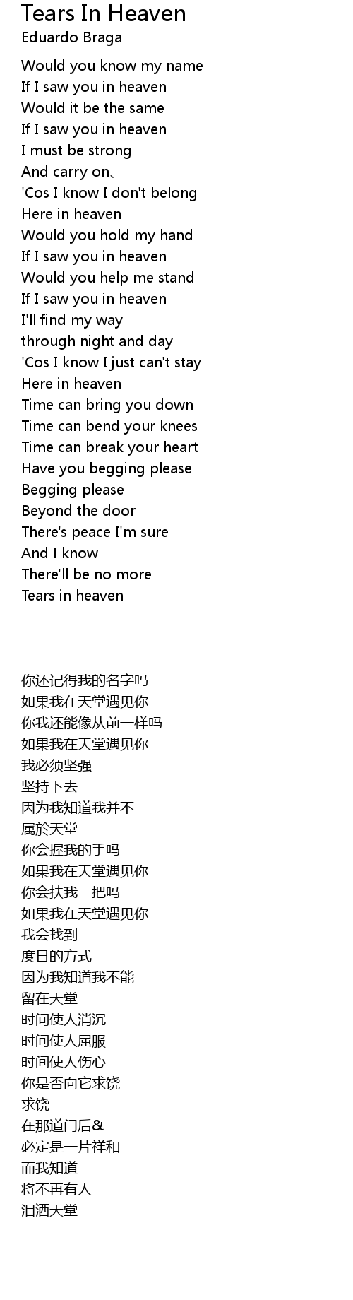 | 歌曲 | Tears In Heaven |