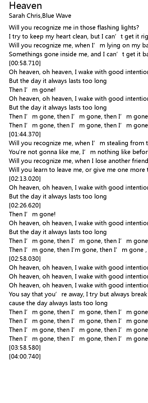 | [02:59.120] | Oh heaven, oh heaven, I wake with good intentions, |