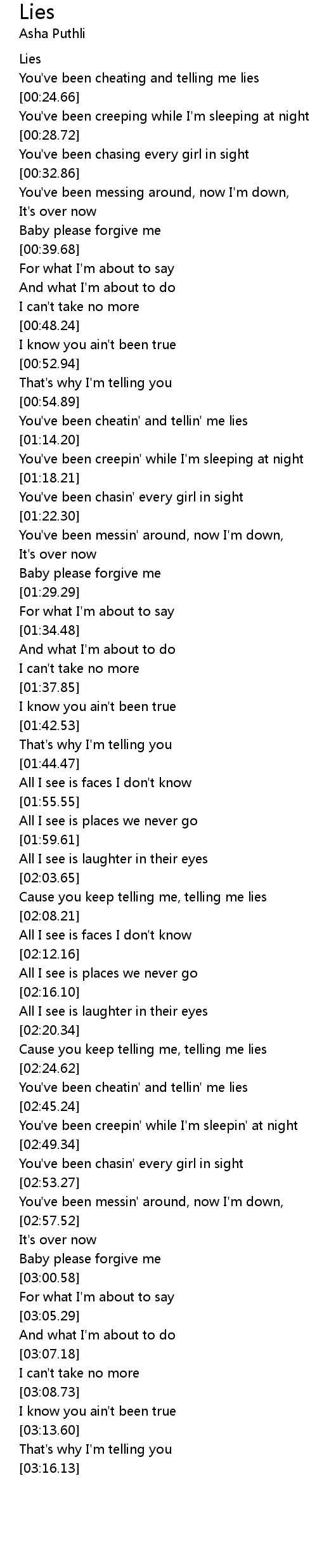 Cause you keep telling me, telling me lies |