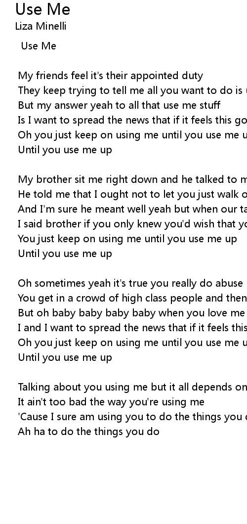 Oh you just keep on using me until you use me up