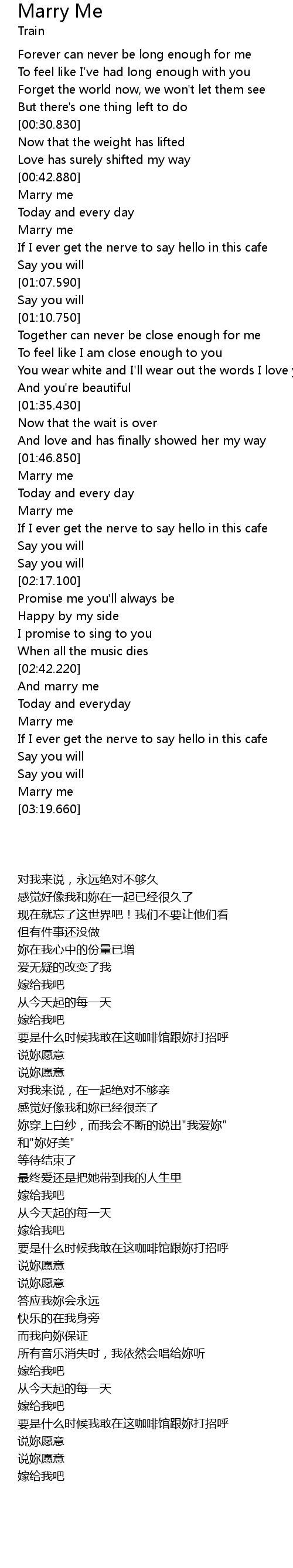 | [00:43.400] | Marry me |