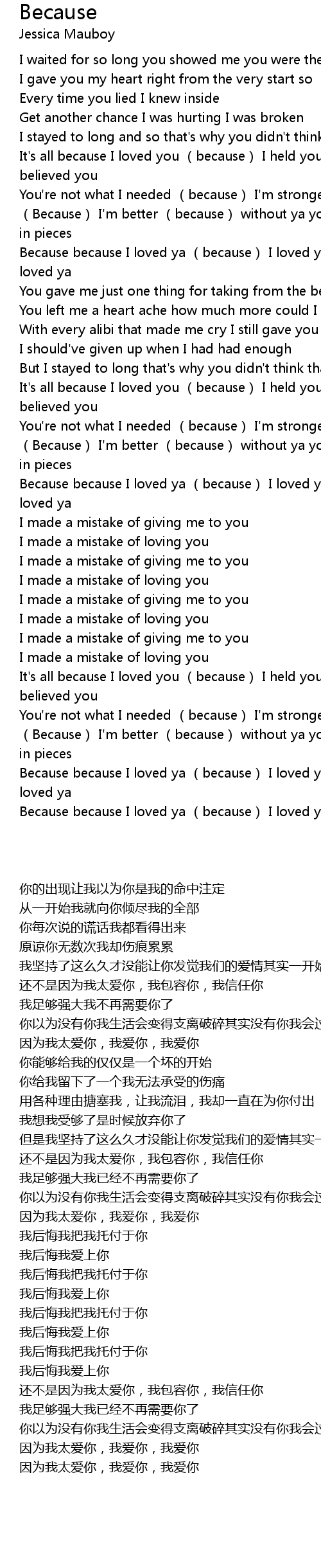 | [00:54.04] | It's all because I loved you (because) I held you (because) I believed you |