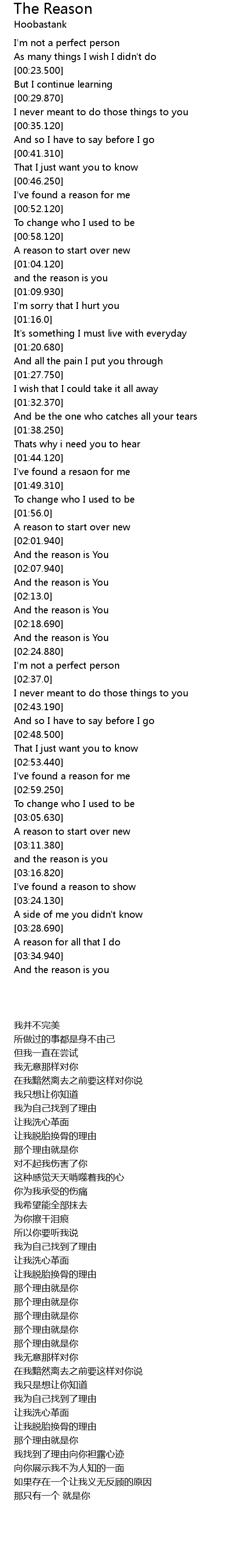 | 歌曲 | The Reason |