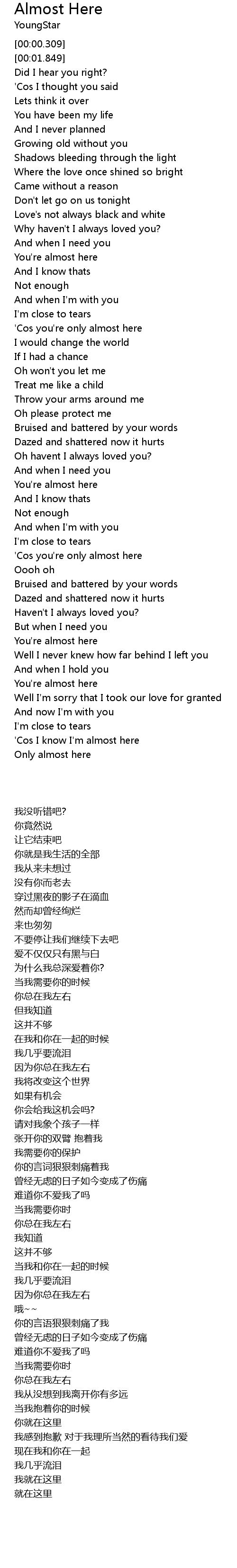 'Cos you're only almost here |